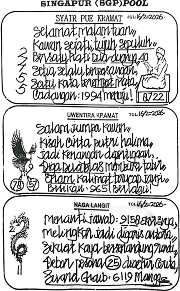 SYAIR PREDIKSI KELUARAN SGP, 16-Feb-2026